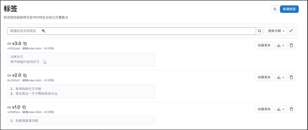 配置 3 个 tag 对应 3 个版本的代码