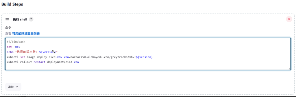 kubectl set image deploy cicd-xbw xbw=harbor250.oldboyedu.com/greytracks/xbw:${version}