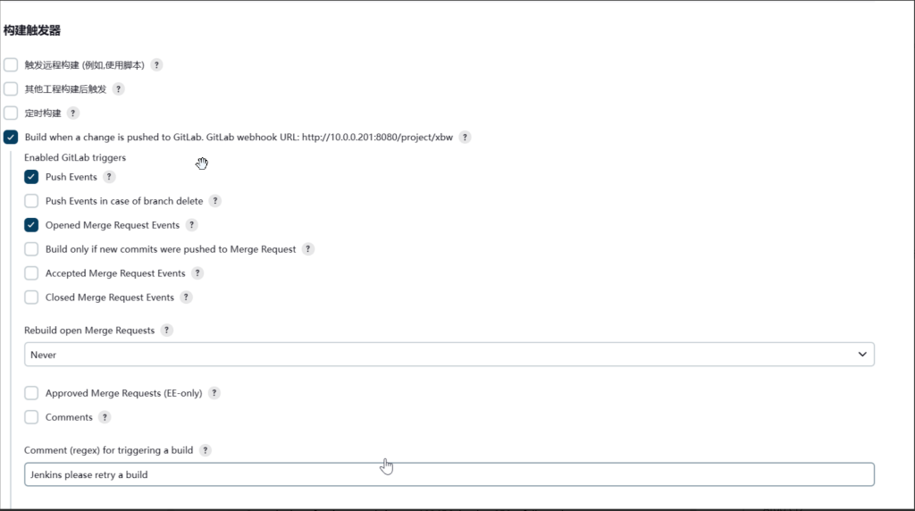 1.3 设置 webhook ,只要变更代码 就立即触发 Jenkins